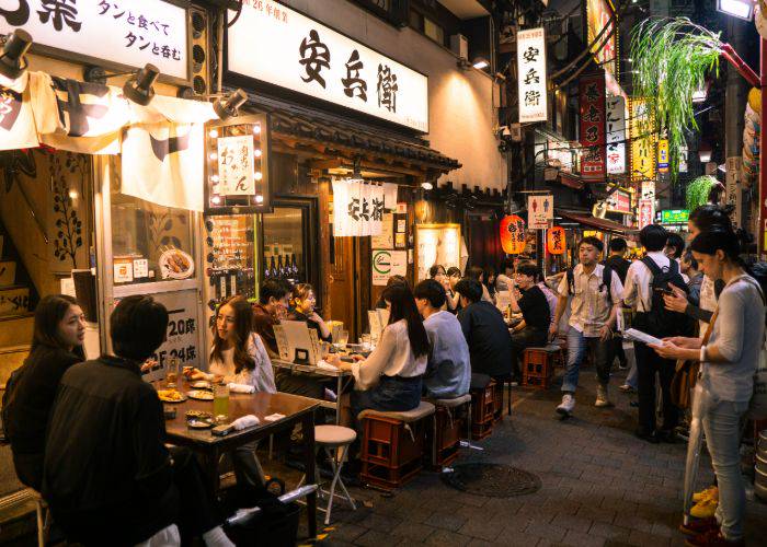 Japanese-style pubs offering snacks, grilled skewers, and drinks.